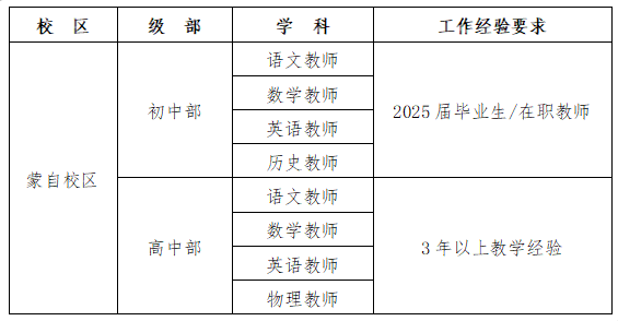 蒙自華清中學2026年春季學期教師急聘公告